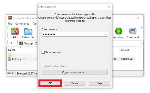 استخراج ملفات ZIP المحمية بكلمة مرور باستخدام WinRAR